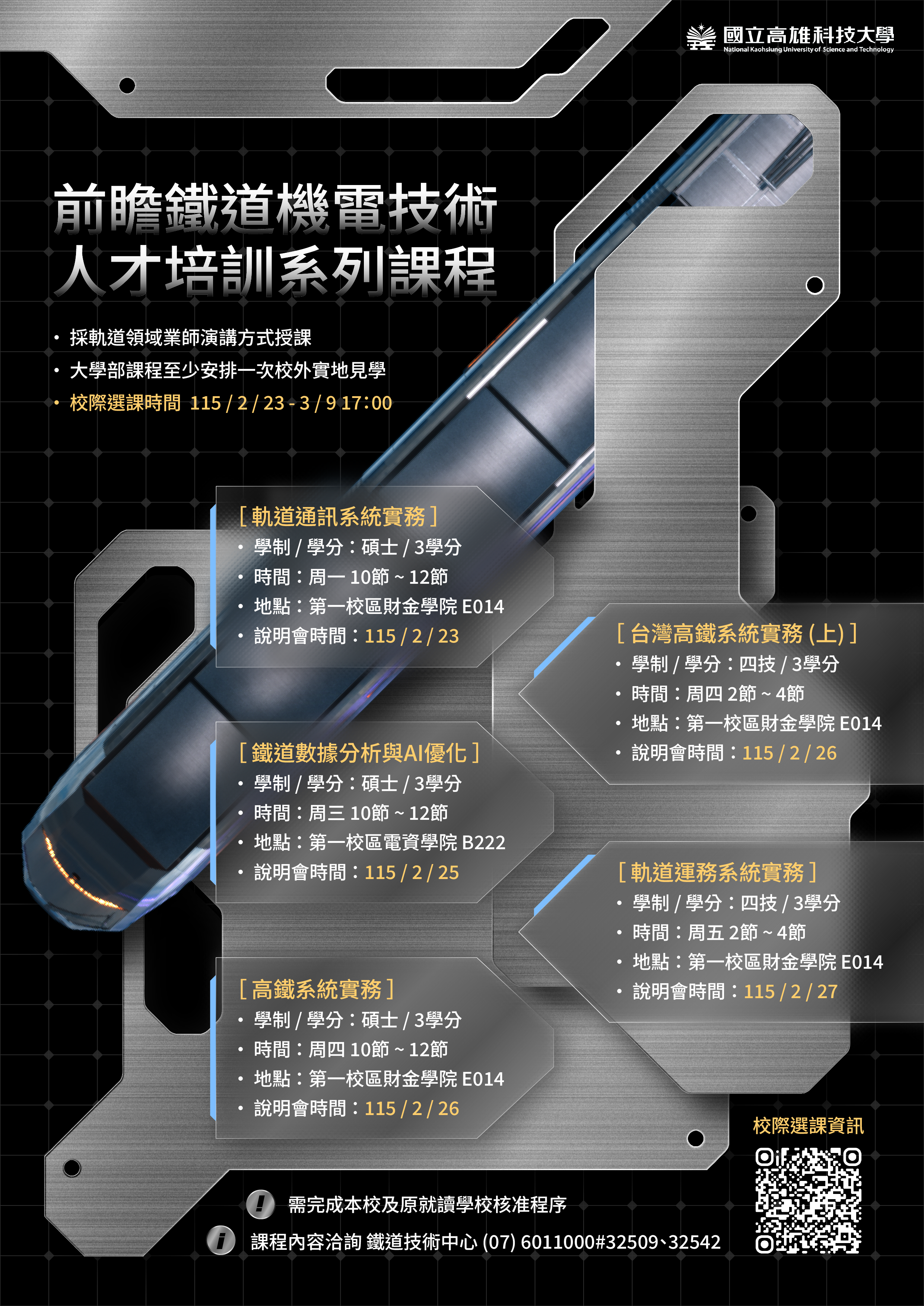 一、依國立高雄科技大學115年2月26日高科大鐵中字第1151400083號函辦理。